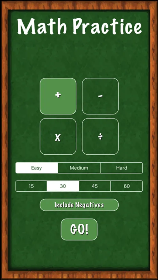 * INTEGERS - Simply tap the "Include negatives" button to work on negative and positive numbers