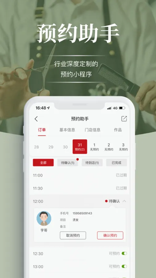 精心为美业开发的专属小程序,只需简单配置就可以创建一个属于发型师个人的小程序。