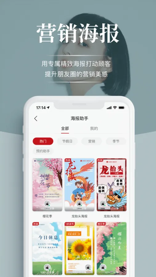 特别为发型师群体设计了上百款营销海报,轻松转发朋友圈,还送上千条定制文案,从此无需为发朋友圈发什么内容而烦恼。