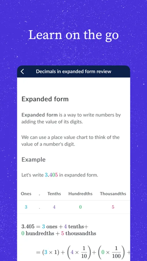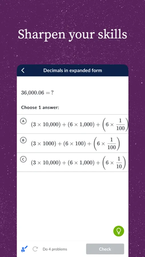 - Sharpen your skills: Practice exercises, quizzes, and tests with instant feedback and step-by-step hints. Follow along with what you're learning in school, or practice at your own pace.