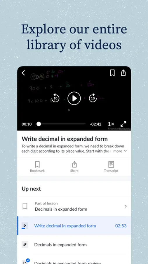 Already familiar with the Khan Academy website? Not all functionality is available in this app. Community discussions, computer programming content, test prep, parent tools, teacher tools, and district tools should all be accessed directly at http://khanacademy.org.