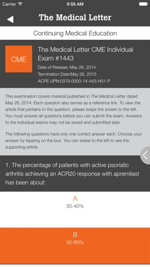 The Medical Letter on Drugs & Therapeutics: With this free app, subscribers to The Medical Letter on Drugs & Therapeutics get full access to their paid subscription. Subscribers can also take CME/CE exams on-the-go from their mobile device.