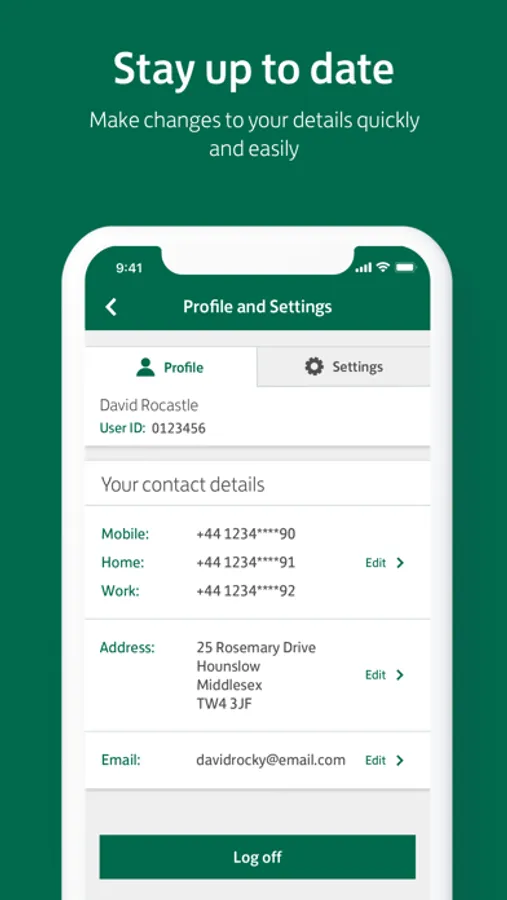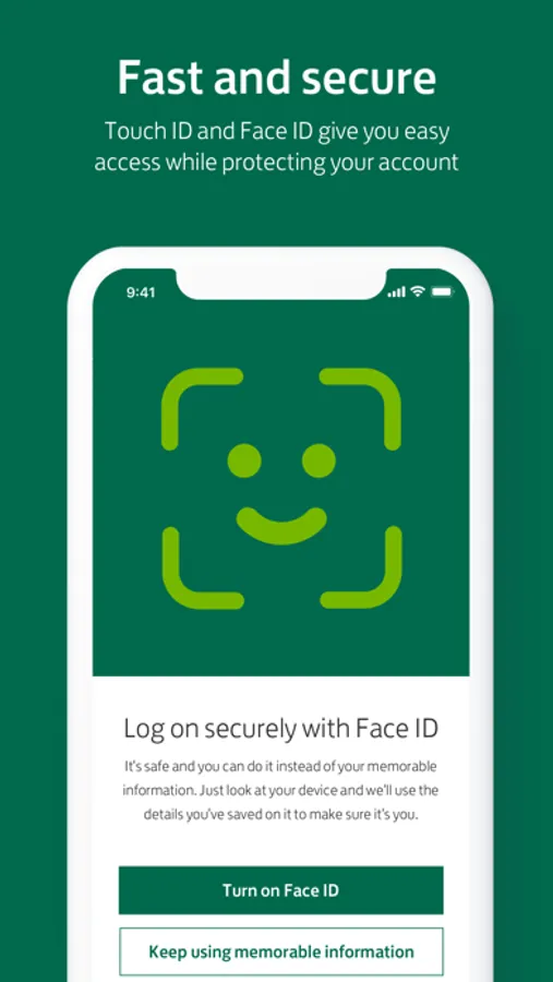 • Log on quickly and securely with Touch ID, Face ID or three characters from your memorable information