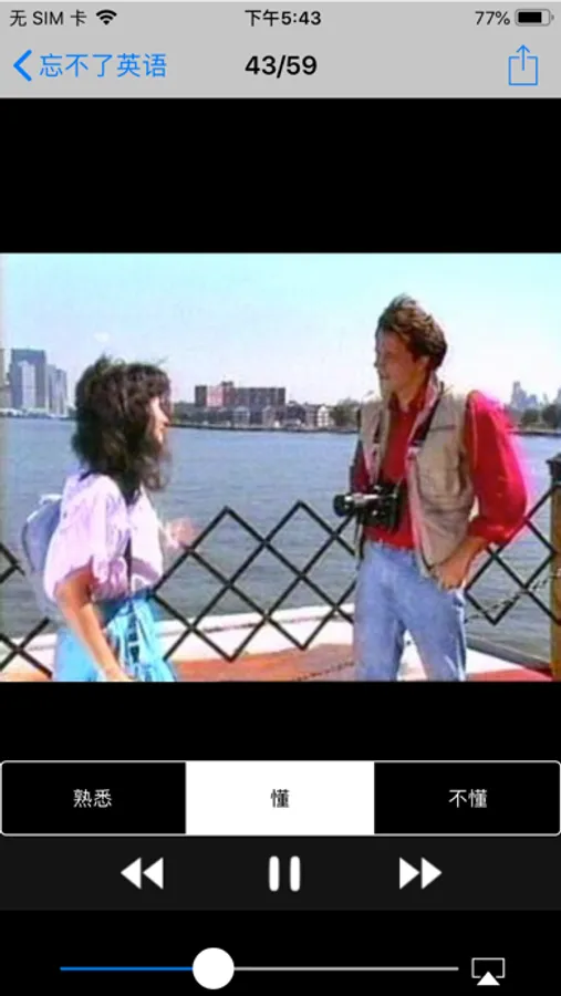 本软件的学习内容以“抽认卡”为基本单元,一组抽认卡组成一个场景,其中只有一个抽认卡需要您做选择操作,来告诉本软件您是否记得。