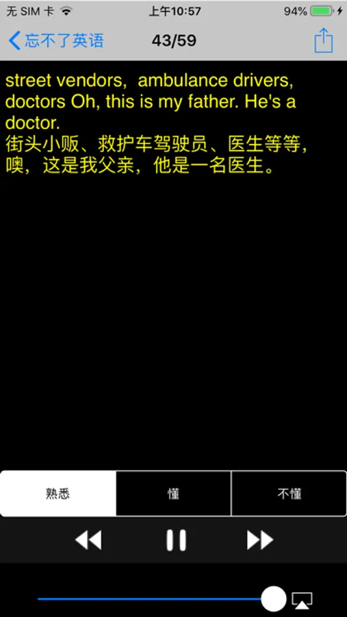 本软件和《VOA基本词汇》利用了iphone在操作界面上的优势,将学习内容以“抽认卡”的方式组织,操作方式接近实物卡片的操作方式,在操作过程中自动记录您对卡片的记忆情况。
