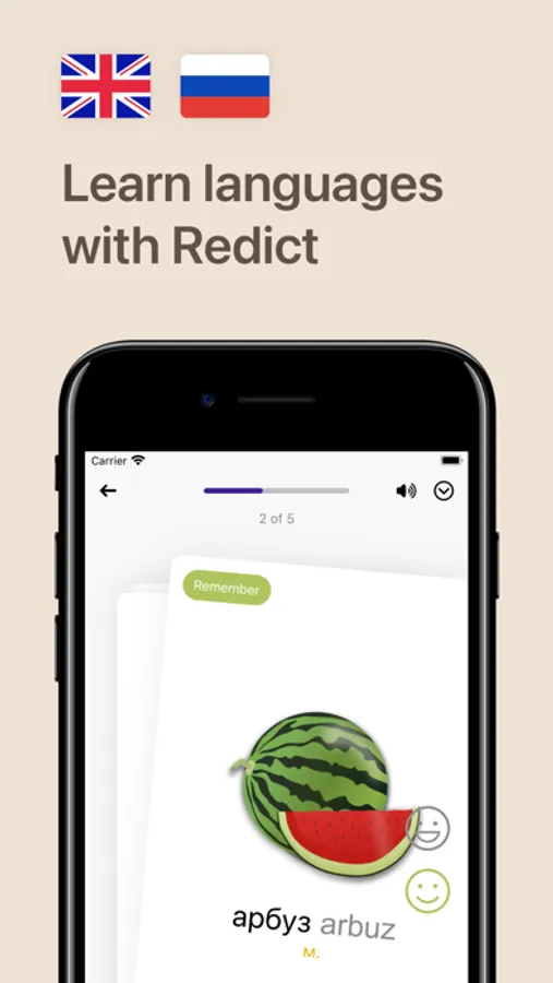 With Redict technology, you can increase your vocabulary and learn English or Russian language faster than ever before.