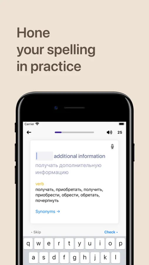 - Memorize what you need. Create your own collection of cards and edit ready-made ones. Memorize words using the delayed repetition system. Practice vocabulary, spelling, and pronunciation exercises. Monitor your progress.