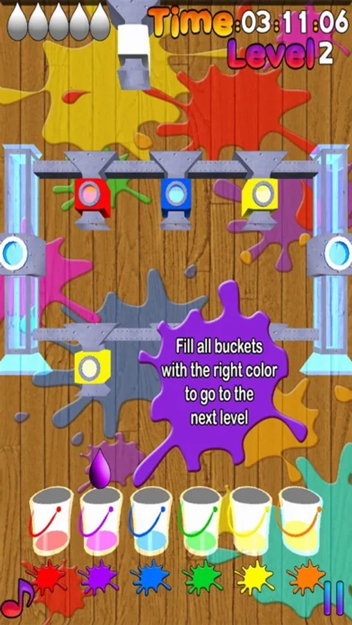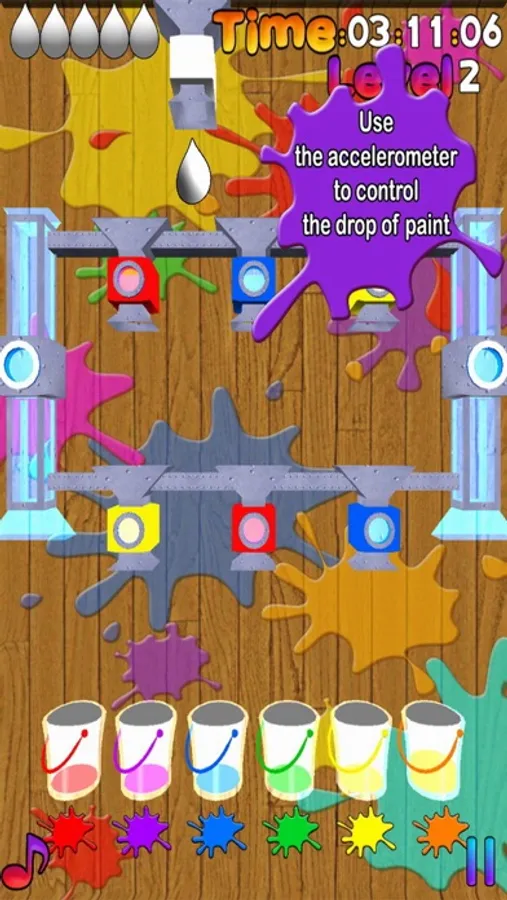 Control your drop of paint with the accelerometer, use the color machines and get the right combination to fill the buckets and go to the next level.