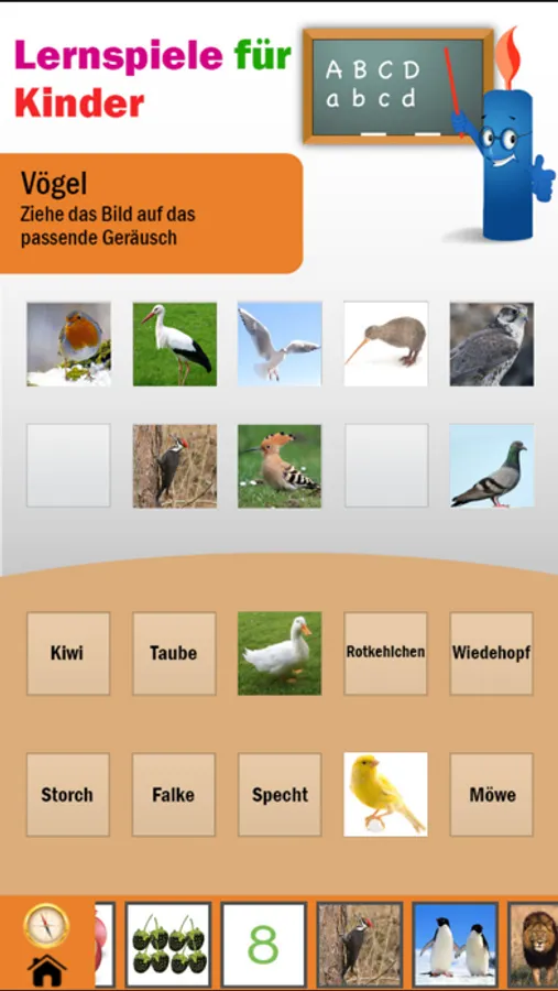 Es werden innovative Wege genutzt, um ihr Kind durch die Nutzung der Bild- und Schriftsprache während des Leselernprozeß zu unterstützen. Durch den Einsatz von Lernmethoden, bei denen die Kinder verschiedene Sinne nutzen, wird der Lernprozeß positiv beeinflußt. Aus diesem Grund wurde "Lernspiele für Kinder" entwickelt, um den Kindern das Lernen und das Erkennen von verschiedenen Objekten, Geräuschen, Farben, Buchstaben und Ziffern zu erleichtern. Diese Anwendung soll positiv zur Intelligenzentwicklung beitragen und den Wortschatz der Kinder auf spielerische Art und Weise erweitern.