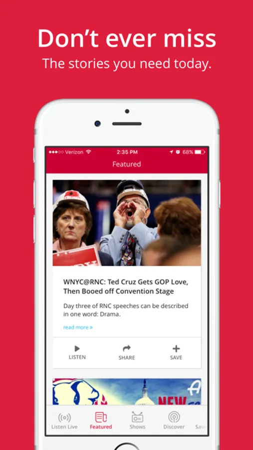Join the New York conversation with the new WNYC app to hear the best live and on-demand news, commentary, cultural reporting, storytelling and music from the world of public radio. Listen to our live broadcast or save podcasts to your playlist for offline listening. With our Discover feature, tell us what interests you and how much time you have and we’ll download a custom playlist for you of segments and full episodes from the best shows in public radio. With the WNYC app, you have access to the most timely and talked-about local and national headlines from WNYC, NPR and other publishers.