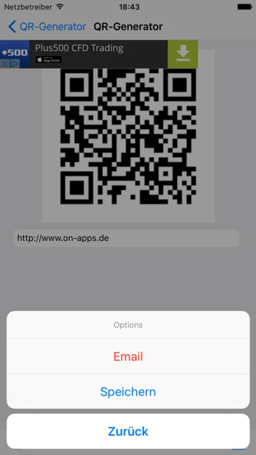 - Create your own QR-Codes, directly on your device and save them or send them by email to your friends