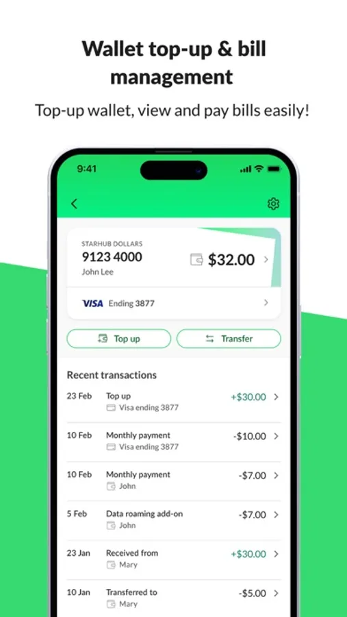 - Safe, simple, and swift in-app payments and top-up of your StarHub Wallet