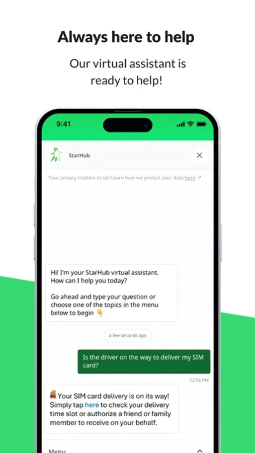 With the Starhub App, activate & manage your services, pay bills, discover and buy personalised offers and enjoy daily rewards all in one place! Simplify your digital life with our 24/7 virtual assistant and rest easy knowing you’re in safe hands!