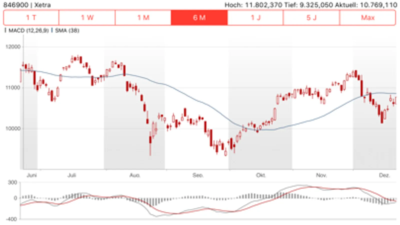 Die Detailansicht bietet Ihnen eine Fülle von Informationen über Kennzahlen, aktuelle Kurse und grafische Charts. In der Chartansicht haben Sie auch die Möglichkeit, verschiedene Linientypen zu wählen und Indikatoren einzublenden.