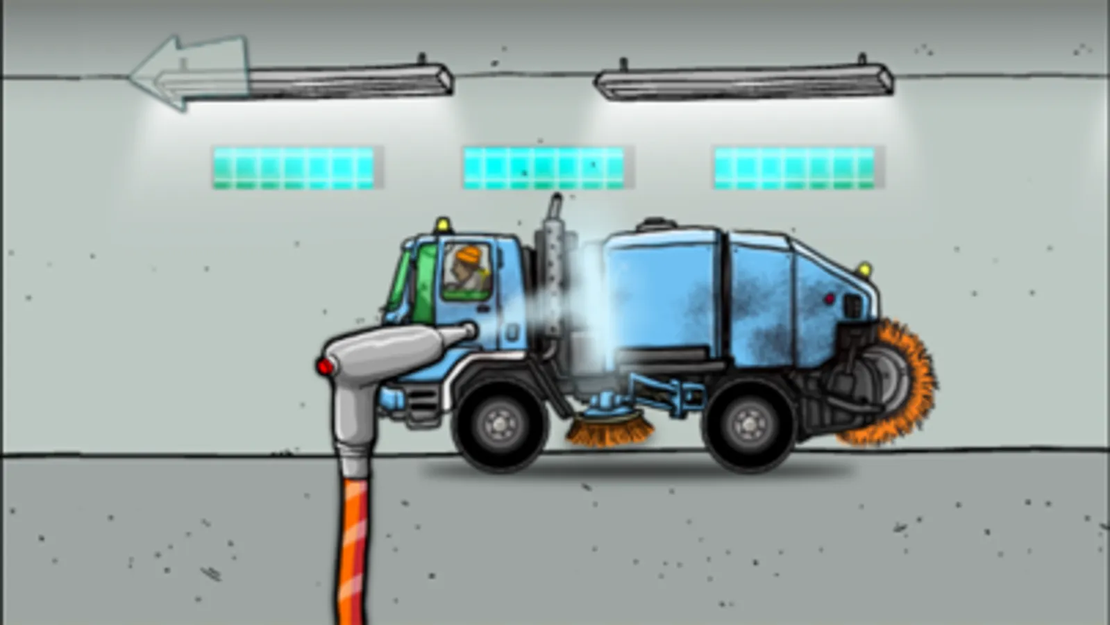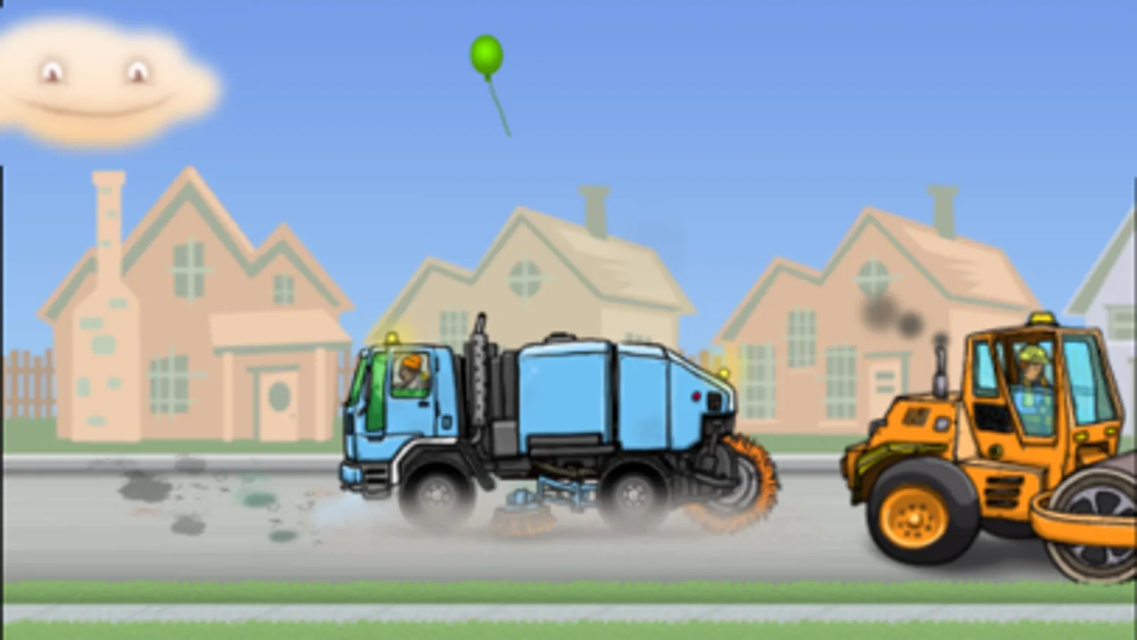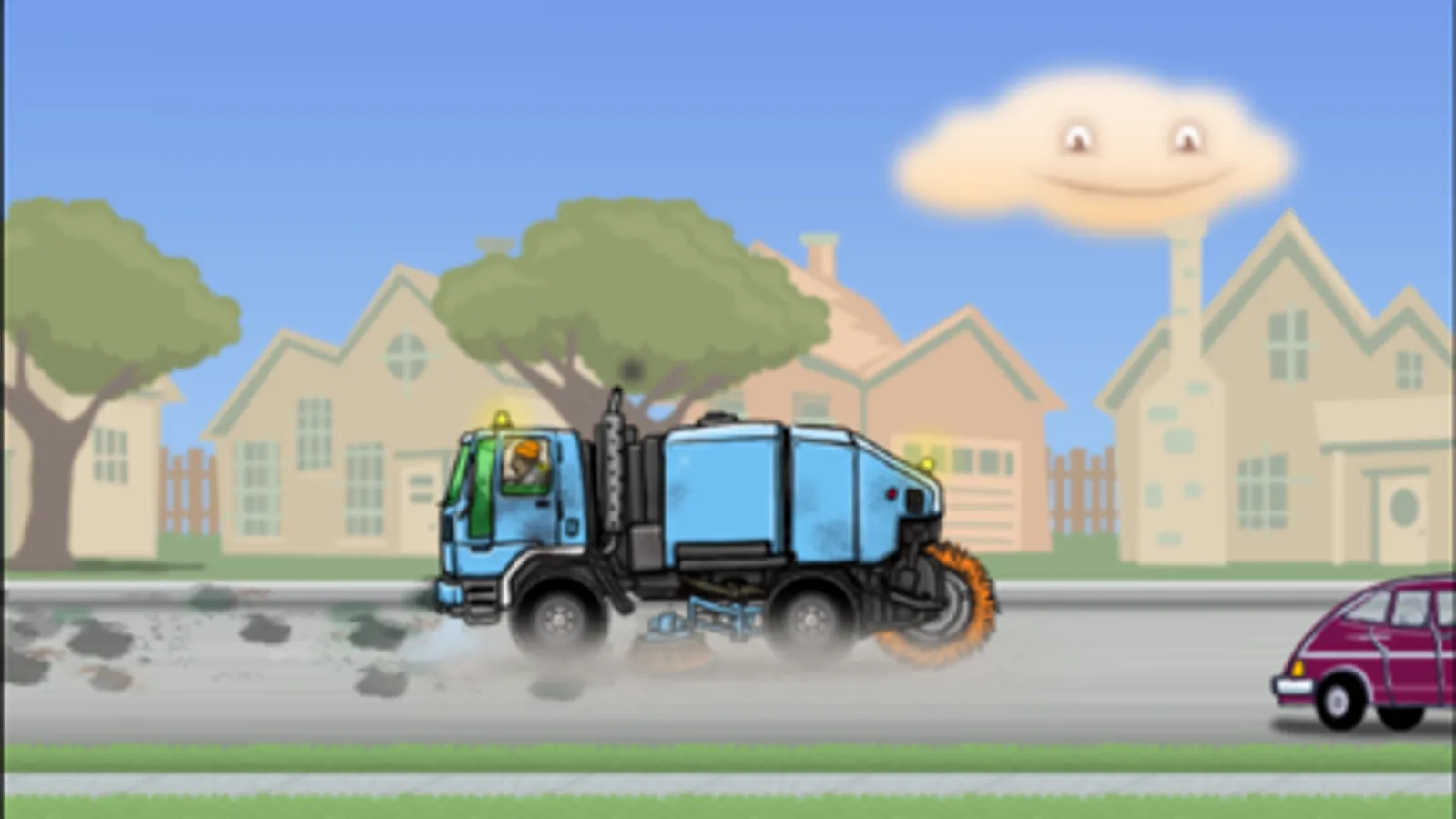Ride along on a Street Sweeper as it drives through a neighborhood. Help the Street Sweeper clean the streets. When the Street Sweeper gets dirty its time for a wash to make it clean again!. A real treat for those little Street Sweeper enthusiasts and a great way to encourage curiosity and interaction for all. Touch the driver and he honks the horn. Touch a cloud as it passes by and it smiles and hums. The neighborhood is interactive. When your child touches people, animals, or objects they make sounds and perform actions. Its like a moving story book!