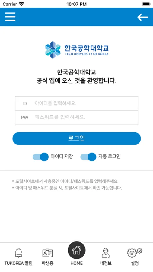 한국공학대학교에 재학중인 학생 및 교직원을 위한 어플리케이션 tukorea 포탈(tukorea Portal)입니다.