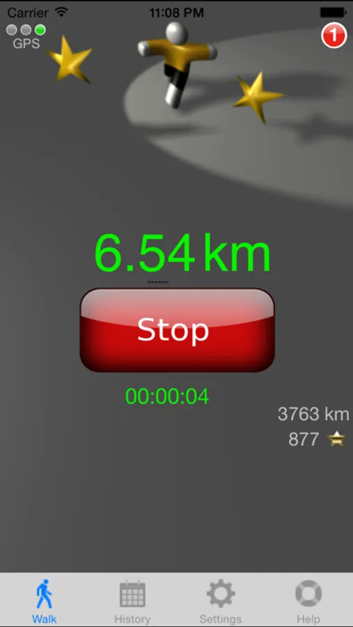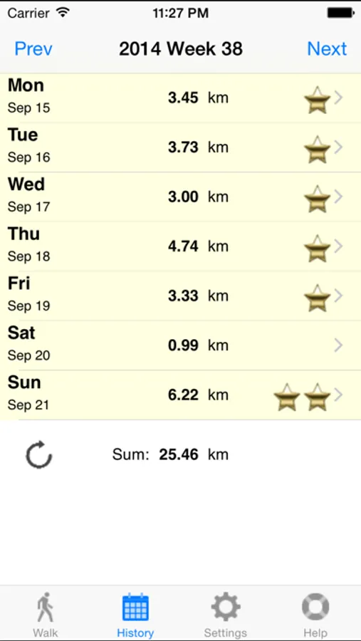 If You walk 2 km, You earn a second Gold Star and You are one day ahead of schedule and You can skip the next days walk.