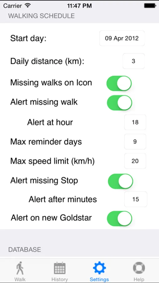 . Daily distance and start day is configurable
