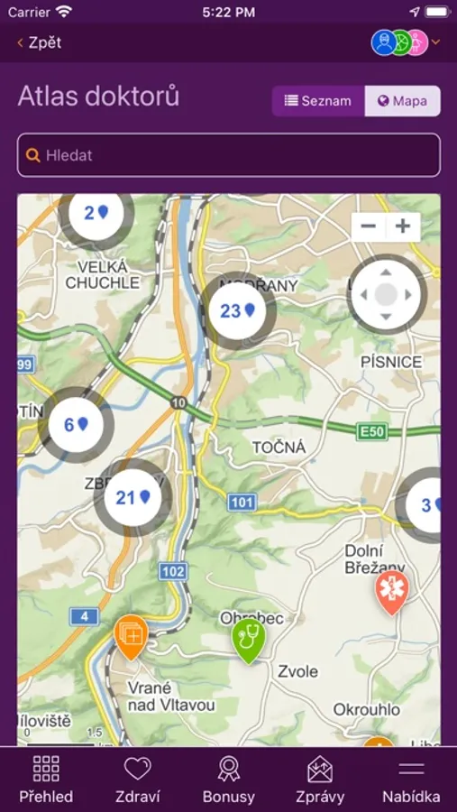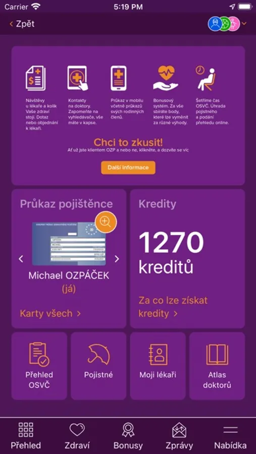 Dále je také možno do aplikace ukládat soubory jako např. lékařské zprávy, výsledky vyšetření apod. nebo také využít služeb Atlasu doktorů, kde naleznou smluvní zdravotnická zařízeni OZP.