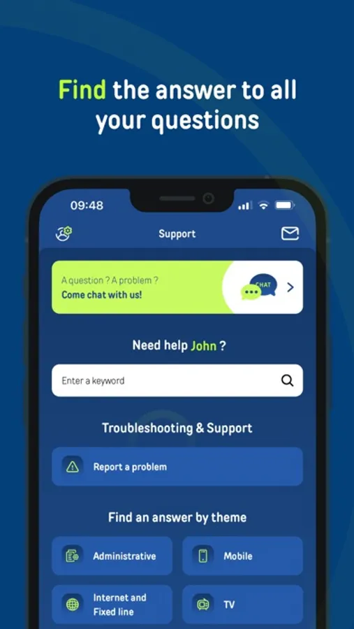 You can access the forum, use our chat feature or search for your solution by entering a keyword directly in our FAQs.