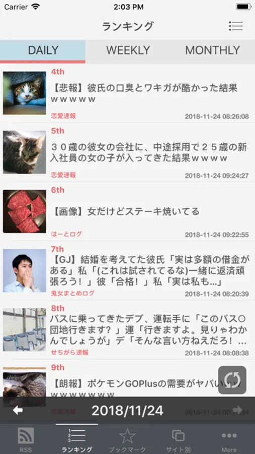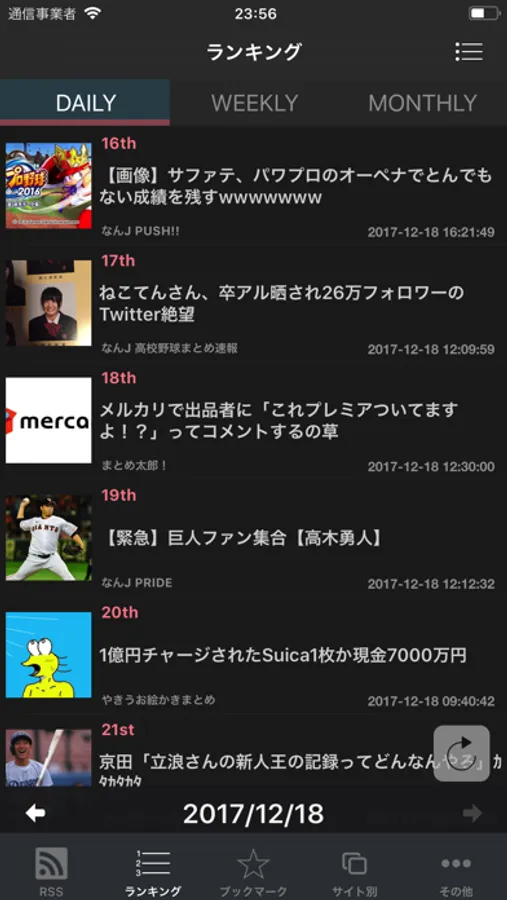 ・デイリー/ウィークリー/マンスリーの3種類の人気ランキング。