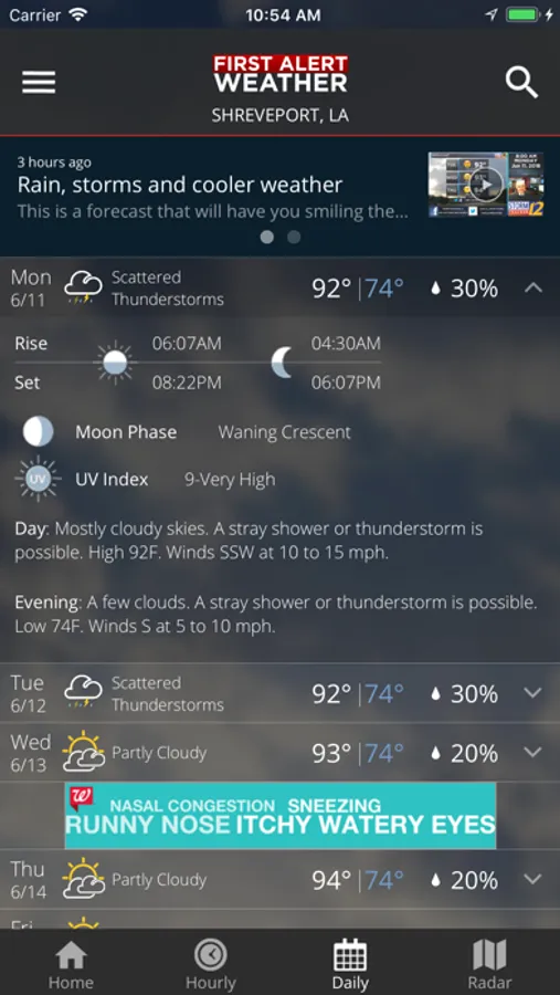 The KSLA Mobile Weather App includes: