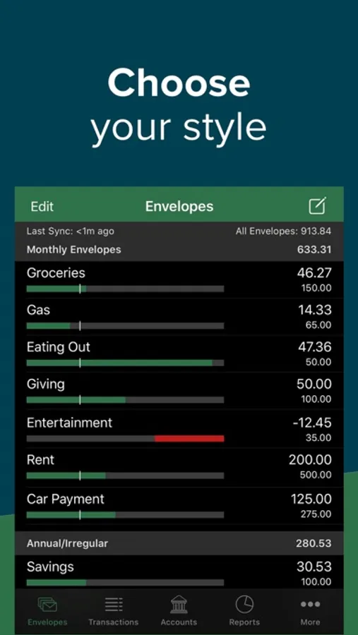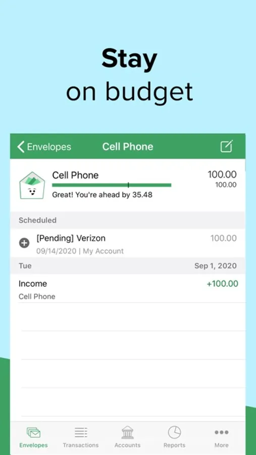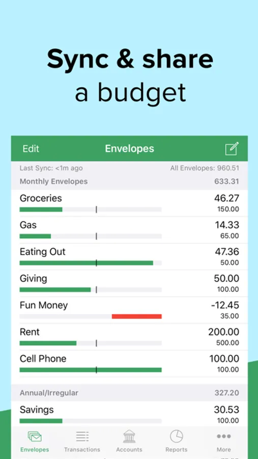 * Check envelopes balances (aka how much you have left to spend) while you're on-the-go