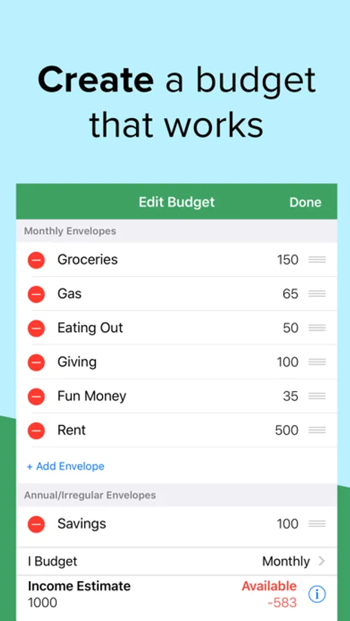 Ad-free, Free Forever version includes 10 regular envelopes & 10 annual envelopes. Use envelope budgeting to plan your spending, not just track it!