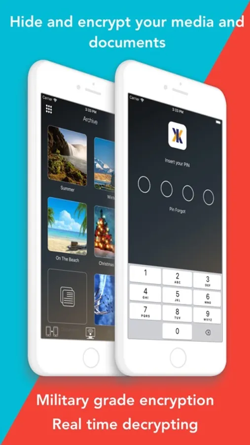 Kyms is an inviolable vault that allows you to hide and encrypt multimedia files, documents, passwords and much more with military grade security (AES Encryption).