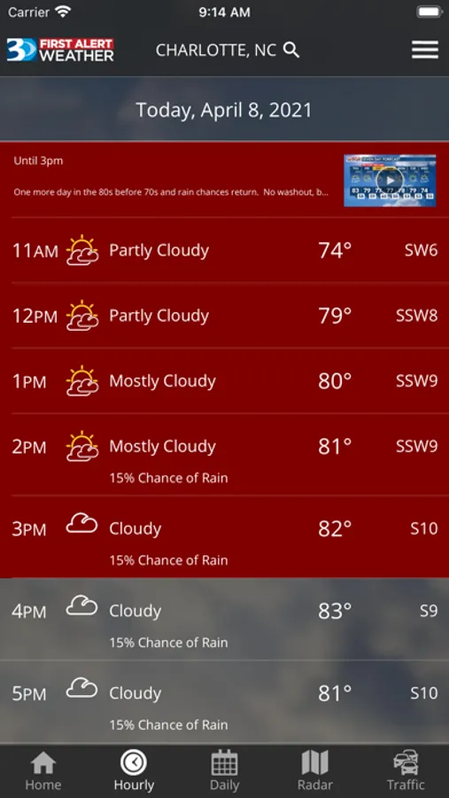 The Charlotte area’s certified most accurate forecast, featuring hourly and daily updates so you’re alerted first when there are changes in the weather!