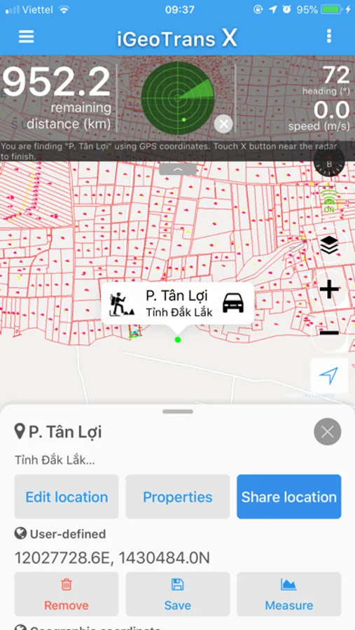 - Measure the distance between two specific locations by coordinates or selected on the map.