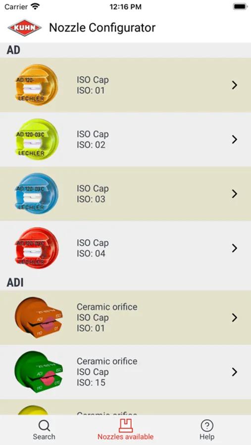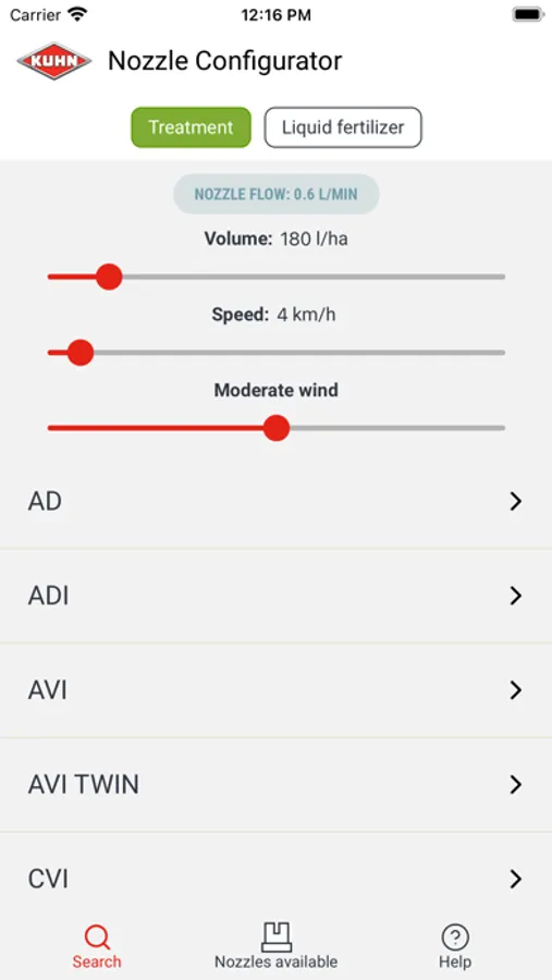 Kuhn has developed a nozzle configuration tool to help you select the correct sprayer nozzle for your application requirements (working speed, flow rate, etc...)