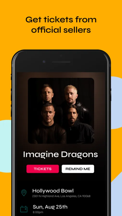 Follow your favorite artists or sync services like Spotify and Apple Music to stay connected and receive alerts when they announce shows near you, and even request a tour stop in your town. Set reminders, get tickets from official sellers, and read reviews before you go.