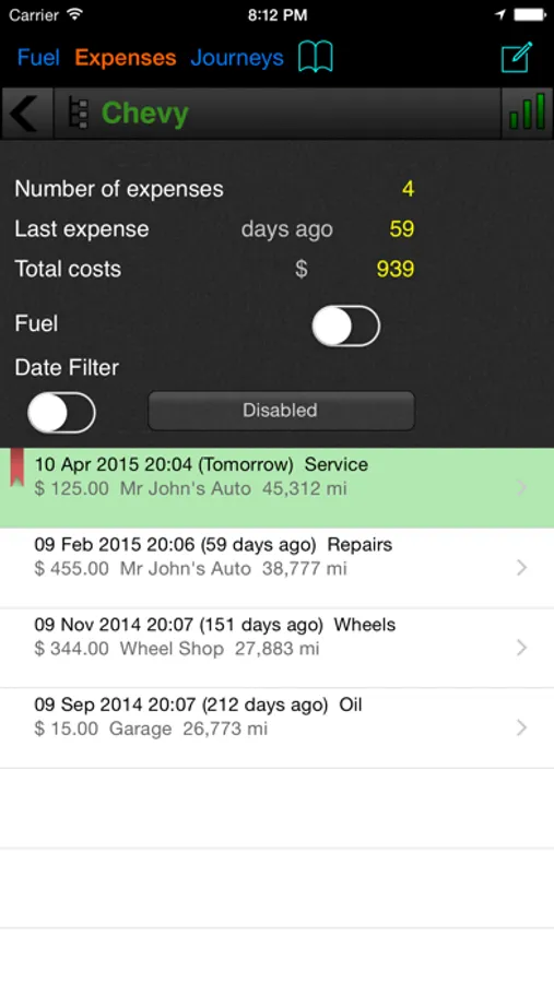 Car Logbook is the perfect App to keep track of your vehicle expenses, mileage and fuel consumption. You can even graph this data over time. Additionally, you can save a record of your business trips for tax purposes.