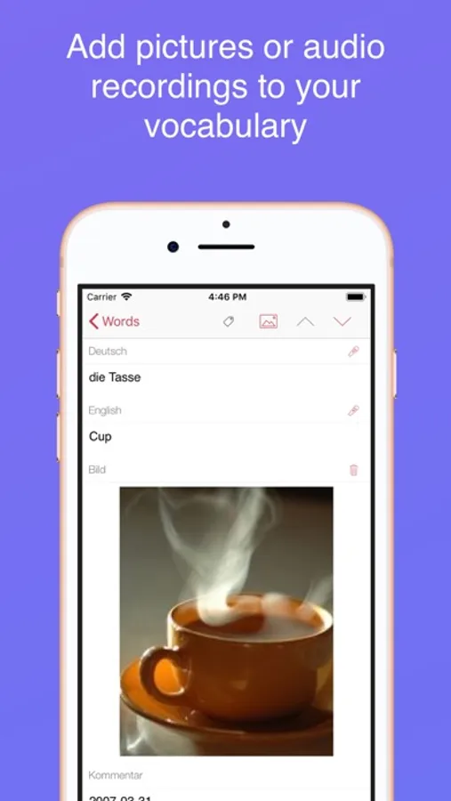 iVocabulary is your personal vocabulary coach. Collect, manage and study your vocabulary and specific terms for school, University, your job or your hobby.