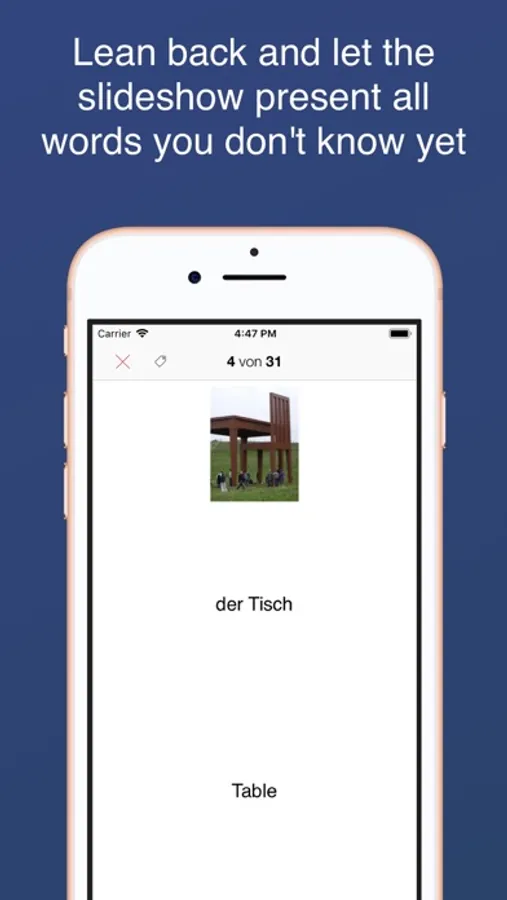 For a first glance on iVocabulary please take a look at our support website. There you will find screenshots and a manual for further information on the app.