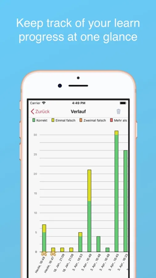 For every single term, iVocabulary determines a grade mark and automatically calculates the next date to learn this term. This way iVocabulary will always present your vocabulary at the right time to ensure the highest level of learning success.
