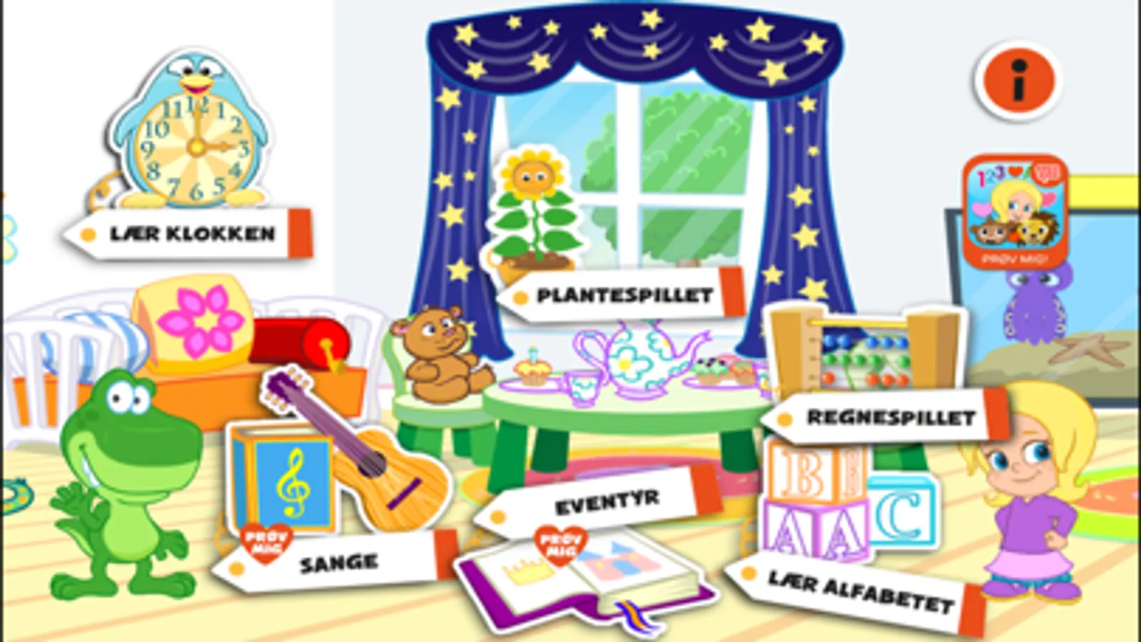 Regnespillet indeholder 4 minispil, hvor de mindste kan øve sig i at tælle fra 1-10 og 11-20. Der er et regnespil med små regnestykker og et minispil hvor kan selv bestemmer hvor mange man vil have.