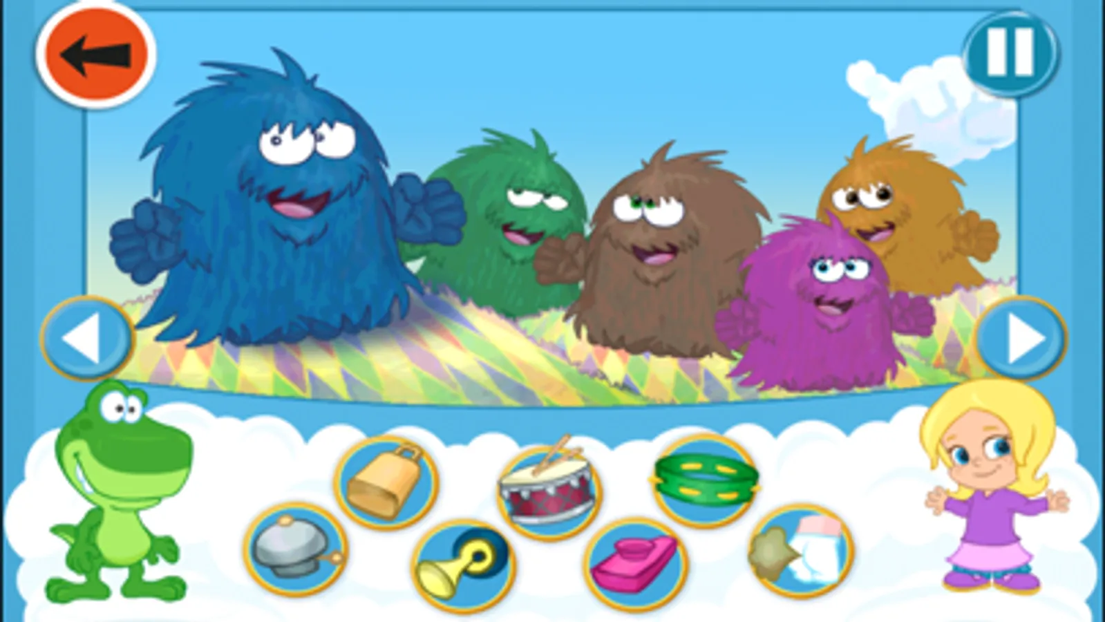 13 sange med huskespil, puslespil og "put-i-kassen"-spil. Til hvert vers kan man se en lille tegnefilm og selv spille med på disse instrumenter: Tamburin, koklokke, kazoo, tromme, båthorn, ringeklokke og prut! Når man klikker på billedet i verset kommer der en ekstra overraskelse. Den kendte og sjove sang “Tommelfinger, tommelfinger, hvor er du” er GRATIS.