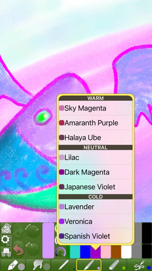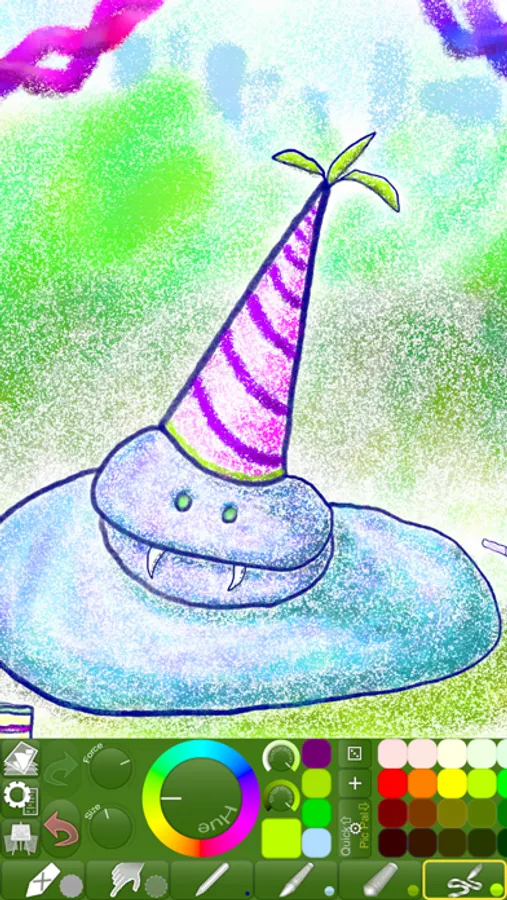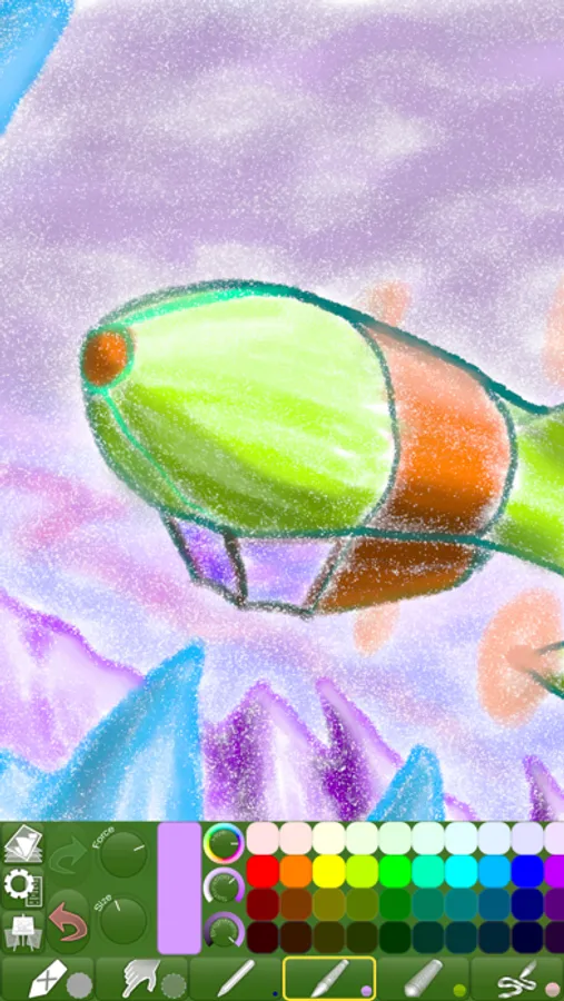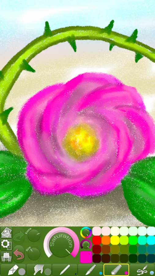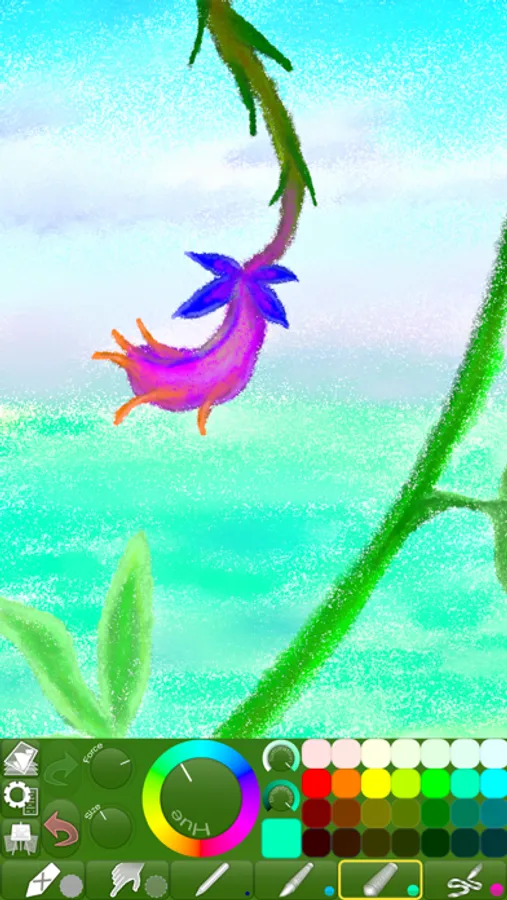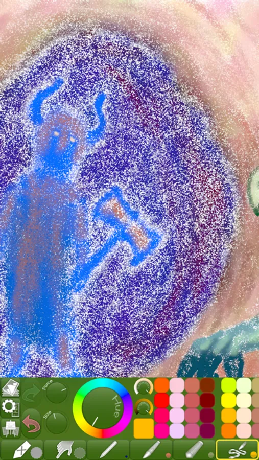 Use any buttons or controls to change/adjust color, size, force, simultaneously while drawing.