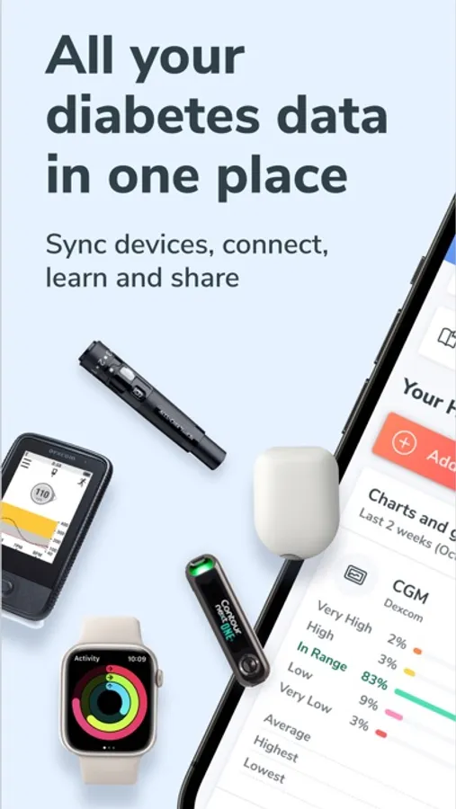 - Sync data from most BG meters, insulin pumps, and CGM.