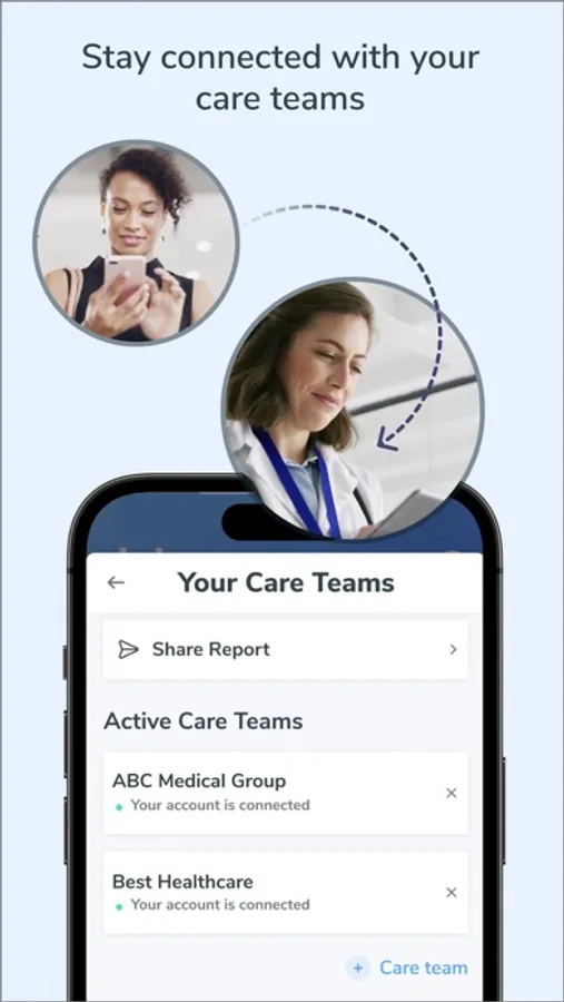 • Care Teams Hub - Easily view which Care Teams you're sharing share data with and/or create reports to share with.