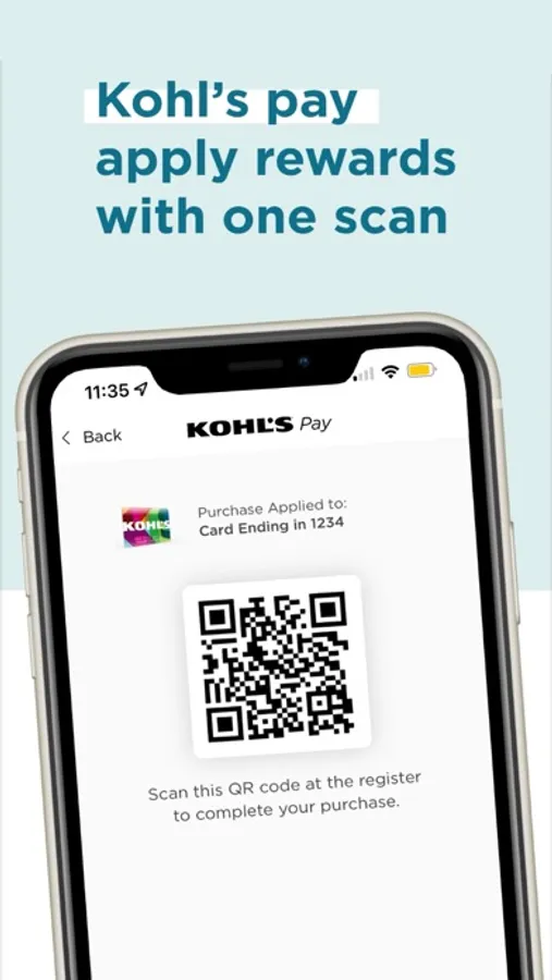 Kohl's Pay is now quicker and easier. Quickly select all your coupons, discounts, savings offers, rewards and Kohl's Cash to load into a single scan QR code and breeze through checkout.