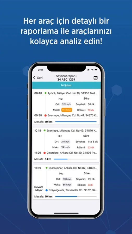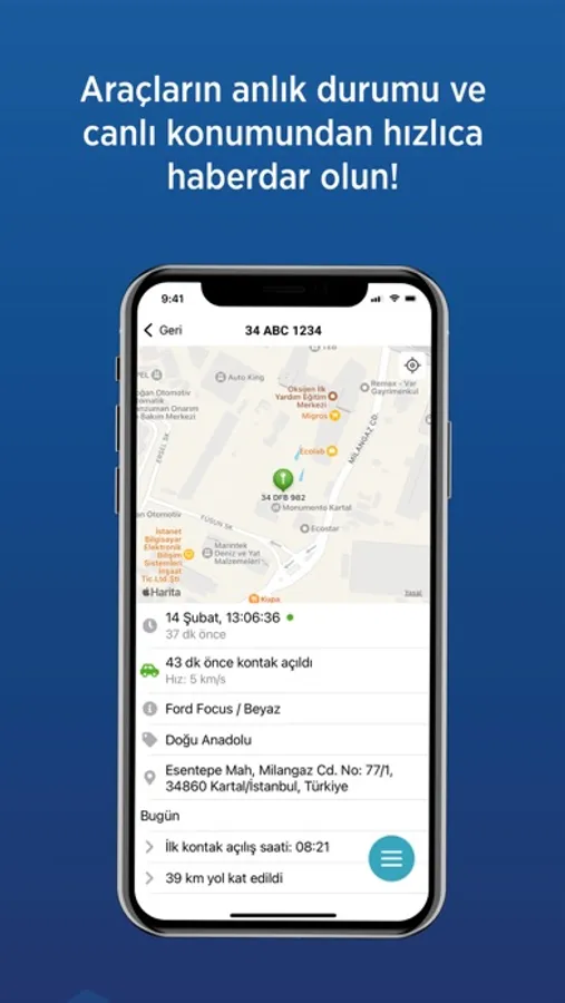 Tüm araçlarınızın son konumları, kontak durumu, hızı, alarm ve ihlal durumlarının tamamını mobil uygulamalar üzerinden kolaylıkla takip edebilirsiniz. Harita üzerinde araçlarınızı görebilir, filonuzla ilgili raporlara erişebilir, animasyon gösterimi ile de geçmiş konumları da görüntüleyebilirsiniz. Müşterileri ihtiyaçları göz önünde bulundurularak düşük veri transferi ile beslenen mobil uygulamalar, hızlı ve son derece kullanışlı olarak tasarlanmıştır. Böylece hem cep telefonu kolaylığında erişim sağlarken hem de data transfer maaliyetleri makul düzeyde kalmaktadir.