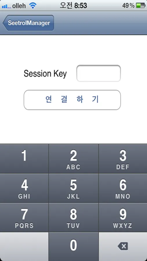 그리고 아이폰에서 SeetrolManger for iPhone를 실행하면 원격지 PC에서 생성된 인증키를 입력할 수 있는 입력창이 생깁니다.