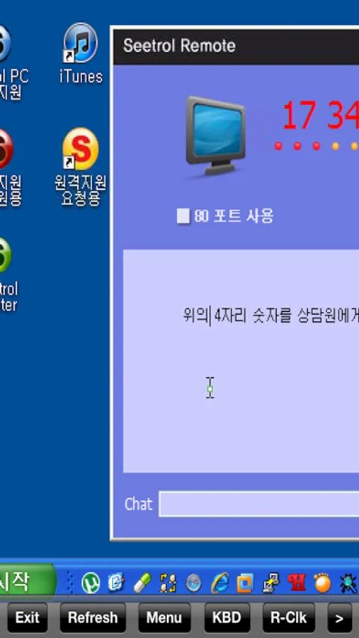 원격지 PC에서 불러준 4자리 인증키를 입력한 후 연결하기를 하면 원격지 PC를 원격제어할 수 있습니다.