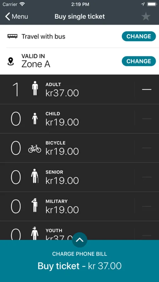 You can pay your ticket in three different ways: by phone bill, with a credit card or with Mobillett account.