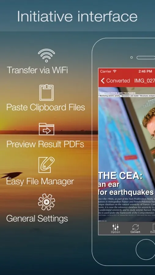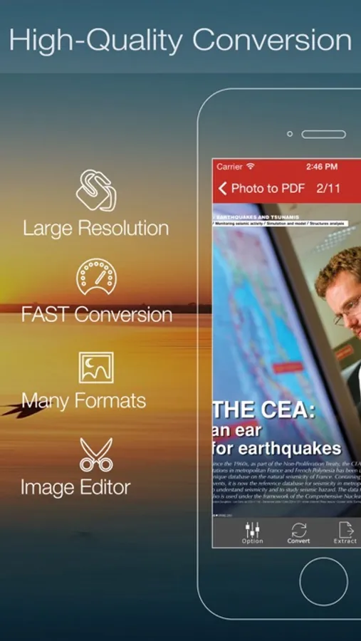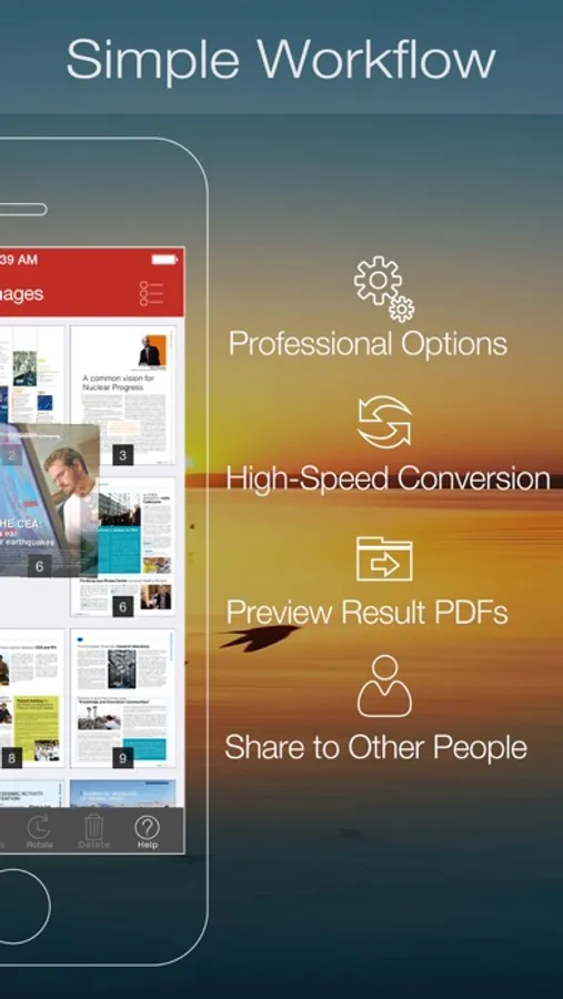 Photo to PDF Converter is an ultimate application that lets your create PDF files from scan photos in camera roll or other image file formats, including jpg, png, bmp, tiff, gif etc.