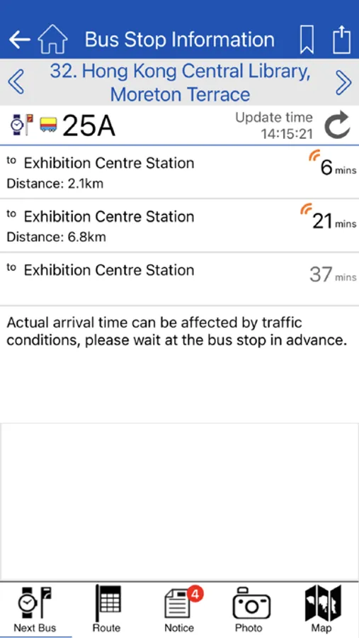 - Exclusively display actual distance between current location of the travelling bus and the selected stop on Citybus routes. Alert user when delay is detected or when the bus cannot continue its journey.