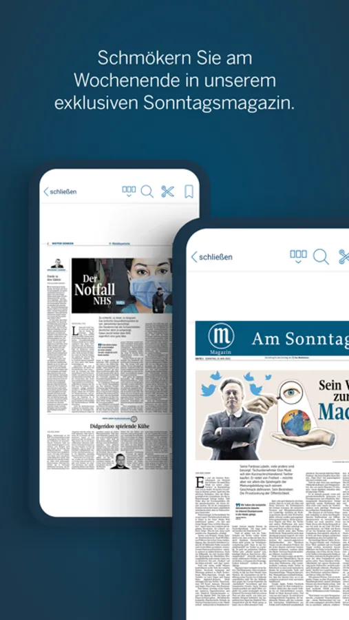 Mit Ihrer Digitalen Zeitung lesen Sie alle Artikel in Ihrer bevorzugten Schriftgröße. In der Artikelansicht können Sie die Schriftgröße bequem nach Bedarf anpassen oder sich die Artikel vorlesen lassen. Auch eine hilfreiche Suchfunktion sowie eine Ausschneidefunktion steht ihnen zur Verfügung.